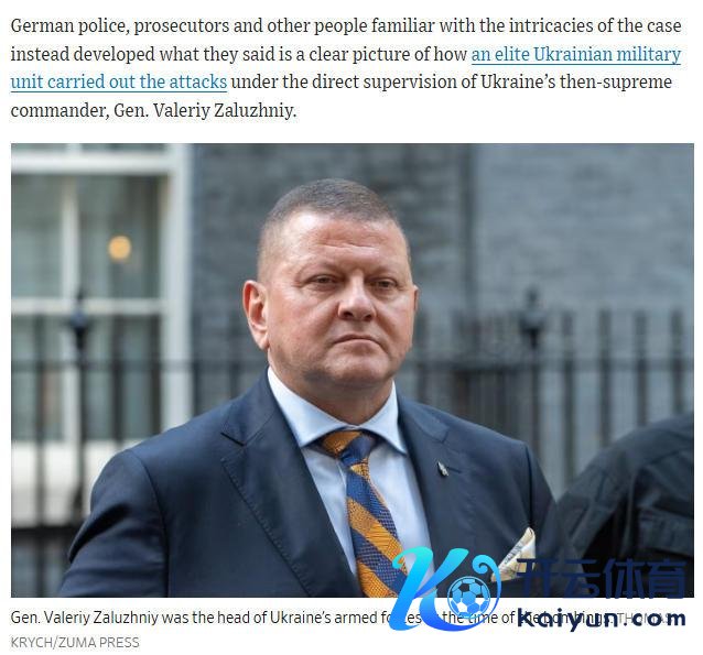 中新网11月12日电 据好意思国《华尔街日报》10日独家报谈开yun体育网,证据德国警方和放哨官的打听,“北溪”管谈爆炸案有了最新发扬:系由一支乌克兰精锐队列在时任乌克兰最高统率扎卢日尼的告成监督下,实行了这些进犯。 图为扎卢日尼。图片开头:好意思国《华尔街日报》报谈截图 最新打听: 指向乌军方高层 报谈称,三年来,德国警方通过跟踪船只租借、通信修复与车牌信息,冉冉锁定涉嫌参与“北溪”管谈爆炸案的乌克兰军事东谈主员。 德国联邦刑警总局的打听团队通过东谈主脸识别时间与社会信息比对,说明参与行径的