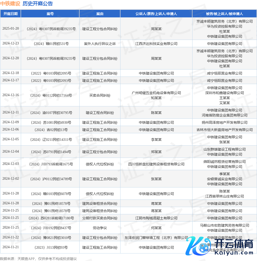本站音讯,凭证天眼查APP阐述体育游戏app平台,近日公布了一则中铁开辟集团有限公司算作被告/被上诉东说念主的开庭公告,扎眼实质如下: