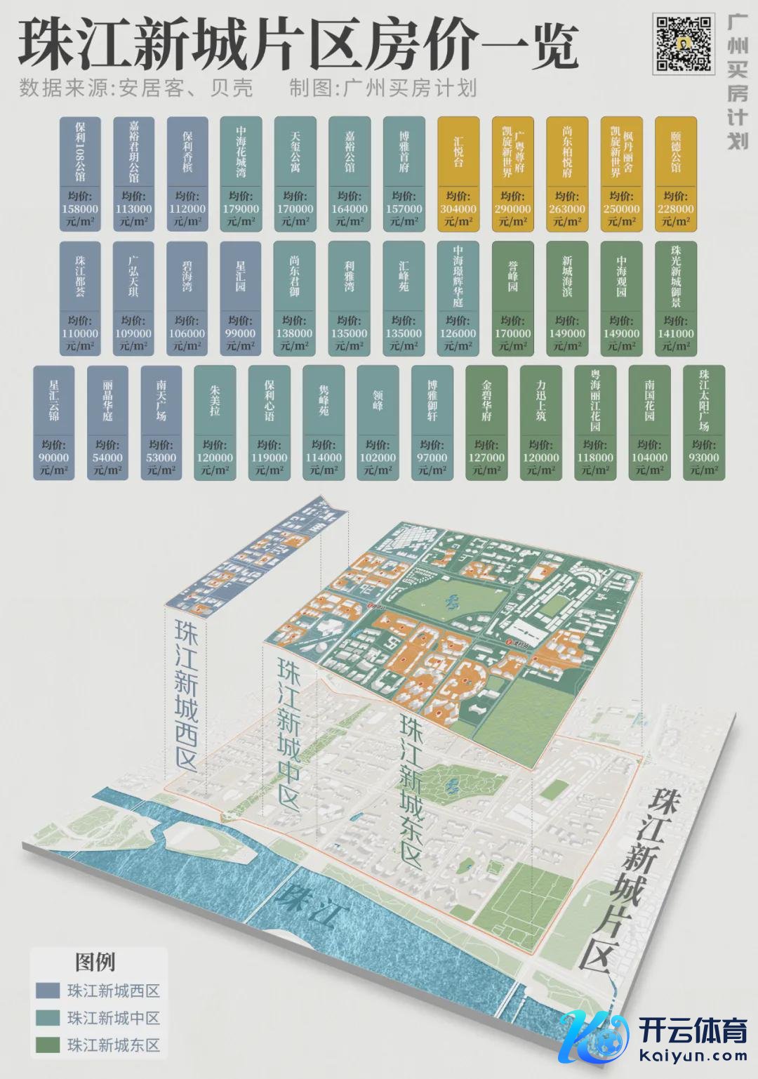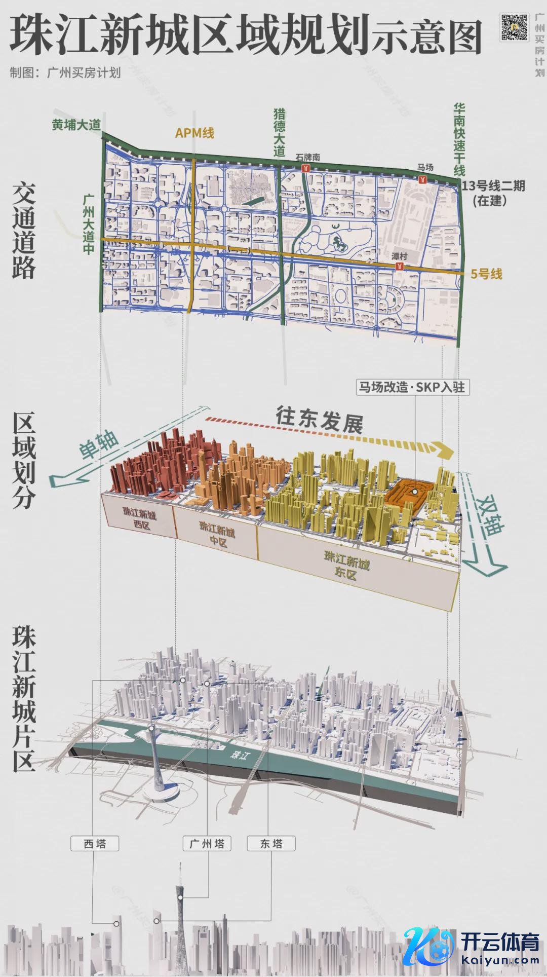 珠城西区、中区、东区三大板块,