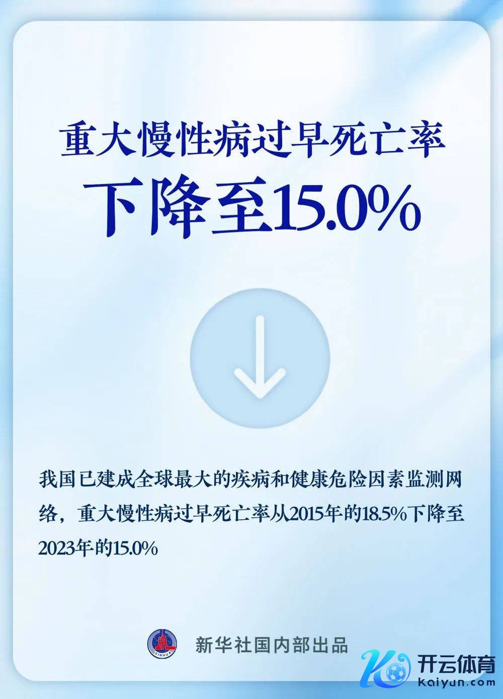 连年来,我国已建周详球最大的疾病和健康危秘要素监测集结,要紧慢性病过早升天率从2015年的18.5%下降至2023年的15.0%。
