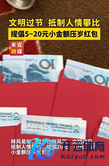 “跟着经济社会发展,个别场合的压岁钱却开动变了味,金额不停增多,界限不停扩大开云体育,出现严重攀比,给东谈主们变成了很大的经济压力和想想背负,尤其是给农村收入较低、家眷较大的东谈主群和老年东谈主变成了很大的压力。” 1月26日,广西防城港市委宣传部、市精神文静办发出倡议书称,为进一步倡树优良家风、鼓舞改俗迁风,让压岁钱回想道贺本位,营造积极健康朝上的节日氛围,共同渡过一个文静省俭、圣洁慈祥的春节,现倡议少发压岁钱。压岁钱是长者赐与晚辈的新年事礼,不是亲一又之间彼此攀比的“好意思瞻念钱”,不提议