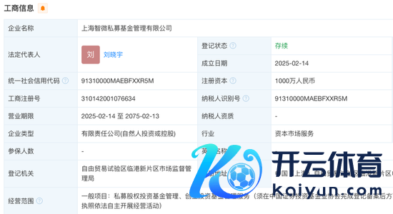 基金君查询天眼查发现,智微公司于2025年2月14日成立,注册本钱为1000万元东说念主民币,法定代表东说念主为刘晓宇。公司标的鸿沟为私募股权投资基金处置、创业投资基金处置办事。