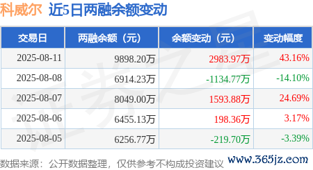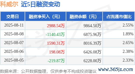 本站音问开云体育,8月11日,科威尔(688551)融资买入8840.14万元,融资偿还5851.59万元,融资净买入2988.54万元,融资余额9864.5万元,近20个往来日中有11个往来日出现融资净买入。