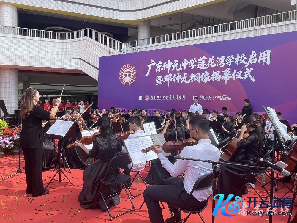 8月31日上昼,广东仲元中学莲花湾学校的校园里响起了激越的仲元校歌。这首承载着仲元精神的歌曲,第一次在莲花湾畔飘荡,标志着仲元办学理念在发挥注解集团中枢成员校的陆续和发展。同期,这所簇新的学校也迎来了它的历史性工夫——广东仲元中学莲花湾学校启用暨邓仲元铜像揭幕典礼崇拜举行。 交响乐团奏响拉开了序幕 广东仲元中学交响乐团奏响激越的乐章,拉开了典礼序幕。番禺区政协主席邓耀棋、区发挥注解局局长曾敏、石楼镇党委秘书罗志辉等带领,以及凯德发展集团、保利公司等企业代表,全校师生和家长代表共同见证这一工夫。