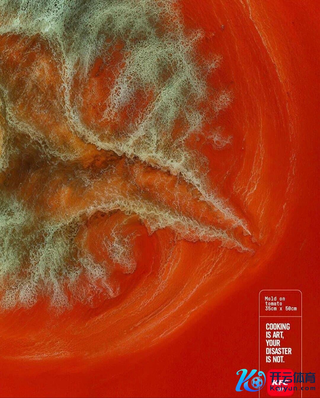 告白把常见的厨房“不幸”(撒了的面粉、烧焦的锅底、溅出的番茄酱和发霉的番茄)从泛泛的、令东说念主颓唐的视角,晋升到了宏不雅的、艺术的视角: