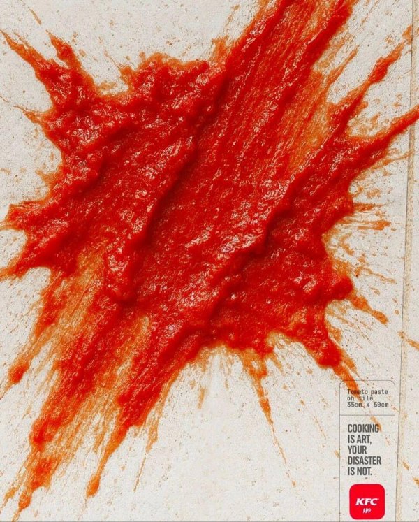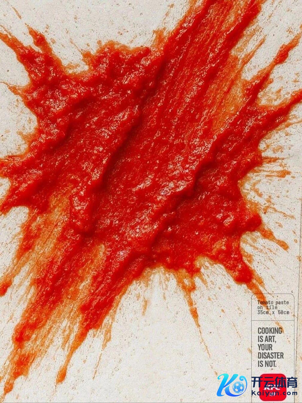 为了抓行我方的外卖业务,肯德基推出了一组反向营销告白。 告白艰深之处在于,把东说念主们泛泛生存中最常见的烹调失败场景,通过艺术化的视角进行了重新阐明,并告诉群众:烹调不错是艺术,但你的“不幸”无须是。 换句话说,当你碰到烹调的挫败时,KFC外卖App是一个完满的替代惩办决议。 海报一共四张,中枢创意,在于“视角调遣”和“反差好意思学”。 告白把常见的厨房“不幸”(撒了的面粉、烧焦的锅底、溅出的番茄酱和发霉的番茄)从泛泛的、令东说念主颓唐的视角,晋升到了宏不雅的、艺术的视角: 1️⃣溅在瓷砖上的