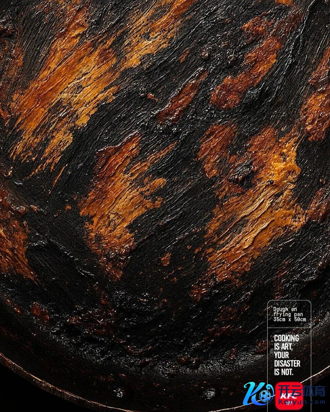 2️⃣平底锅上烧焦的毅力面糊,呈现出如同火山熔岩冷却后,或概括派画作般粗粝而有劲的纹理。 p2