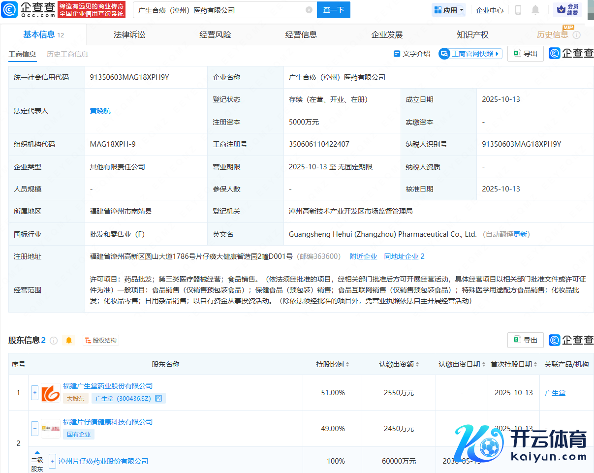 开yun体育网广生堂、片仔癀建造医药公司,注册成本5000万-开云(中国)Kaiyun·官方网站
