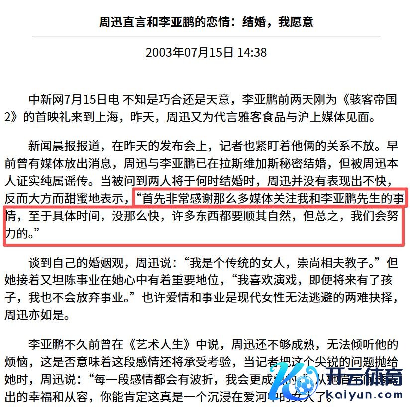 在摄取《艺术东谈主生》的采访时,李亚鹏初度率直我方和周迅在恋爱。