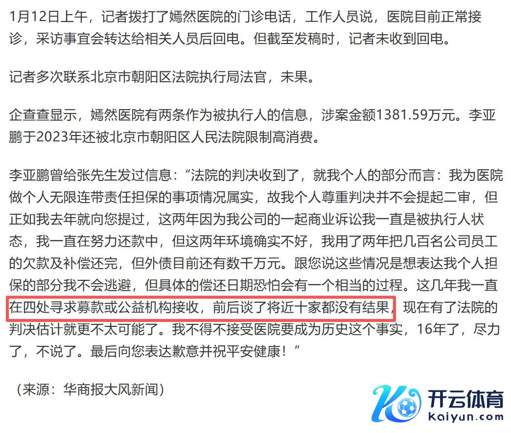 阅读此文之前欧洲杯体育,贫寒您点击一下“善良”,既便捷您进行辩论和共享,又能给您带来不雷同的参与感,感谢您的复古。 本文信源来自巨擘报谈:【齐市现场、本日善良、星视频、微博侠】等(详备信源附在著作末尾)。为进步著作可读性,细节可能存在润色,请千里着直率阅读,仅供参考! 文|娱咖 裁剪|娱咖 序言 一则采访,一纸通知。 李亚鹏这些年来的心酸和费力就这么公之世人。 但再难再苦再不舍,嫣然病院如故没法幸免搬迁的结局。 可这事是福是祸谁又说得澄澈呢? 只是一天之内,李亚鹏的好讯息不停涌来。 嫣然病院或