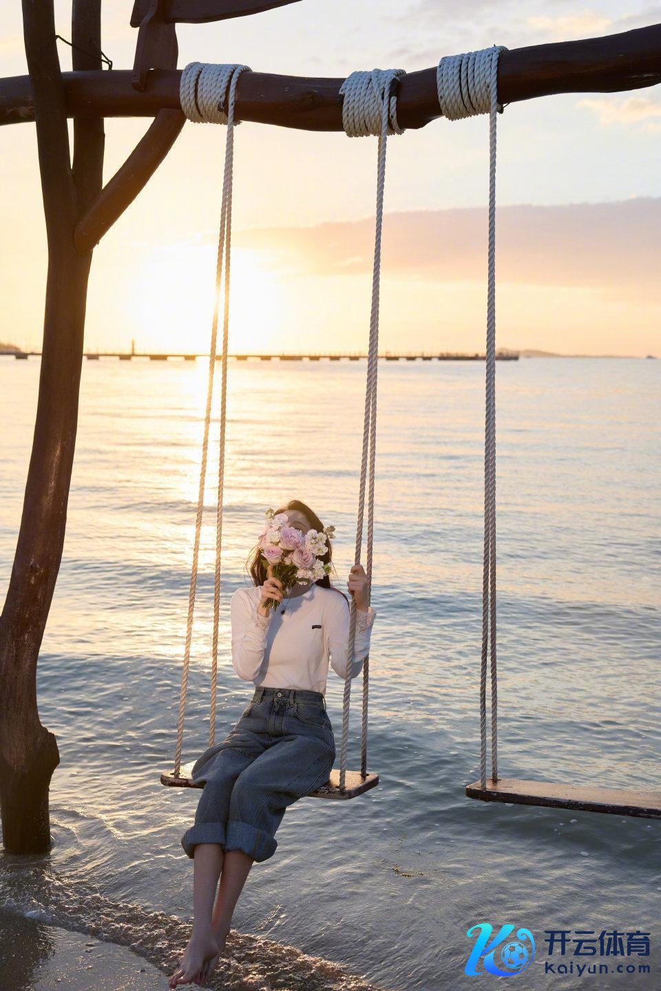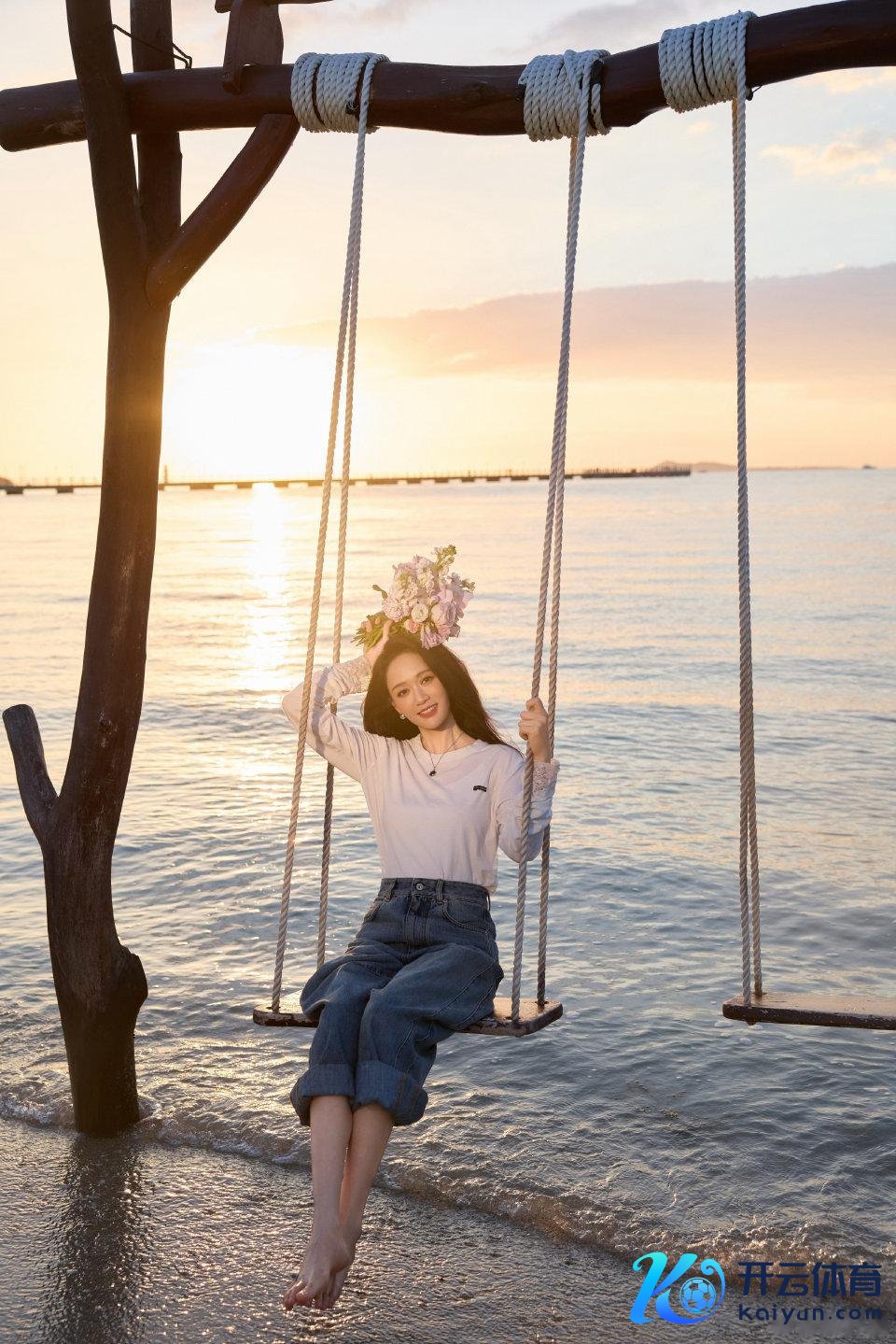 赤脚在海边的沙滩上走来走去,拿着一束花恐怕用来拍照,看老公艾伦掌镜对拍的容貌也太帅气了,对配头是真的很宠啊!陈乔恩也很会挑场地,在太阳起飞的时候拍照很唯好意思,坐在秋千上更有氛围感了。