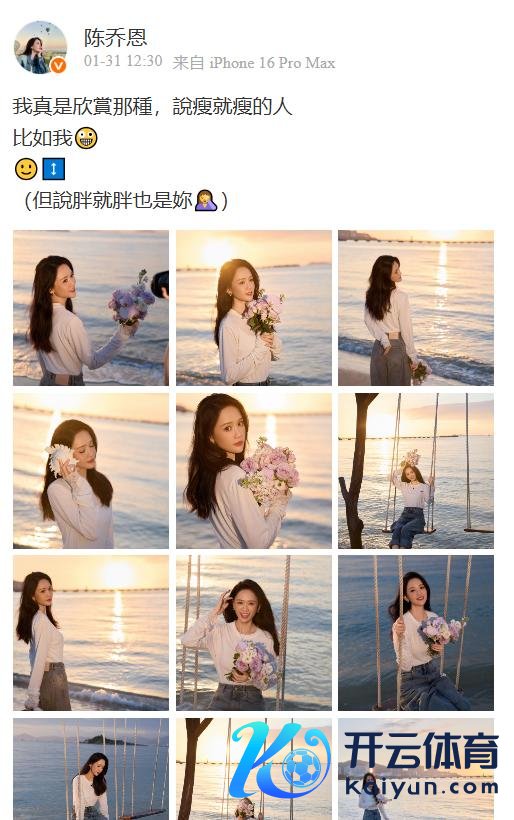 蓝蓝的大海还有渐渐起飞的太阳,加上陈乔恩甜甜的笑颜,嗅觉所有这个词技能齐被定格了,陈乔恩还配文:简直抚玩那种说瘦就瘦的东说念主,还异常指我方,但说胖就胖,如实很勤劳了,关于女明星来说胖上镜就不好意思瞻念,要瘦的话只但是管住嘴了。