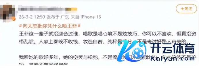 但反对的声浪一样坚实。许多网友反驳向太的“没阅历论”,认为这是在用“艺术高度”和“修行田地”压制合理的公众品评。一个最中枢的质疑是:春晚,最初是一个面向十四亿不雅众的全民联欢舞台,而不是某个艺术家的个东说念主修行后果文告会。在这个特定的、承载着“年味”和“团圆”期待的夜晚,歌曲的传唱度、旋律的亲和力、能否营造喜庆共识的氛围,难说念不是进攻的考量表率吗?当王菲选拔用一首结构非传统、旋律驰念点弱的冷门作品来抒发自我时,是否也意味着她主动毁掉了与更往往不雅众的情谊连结?
