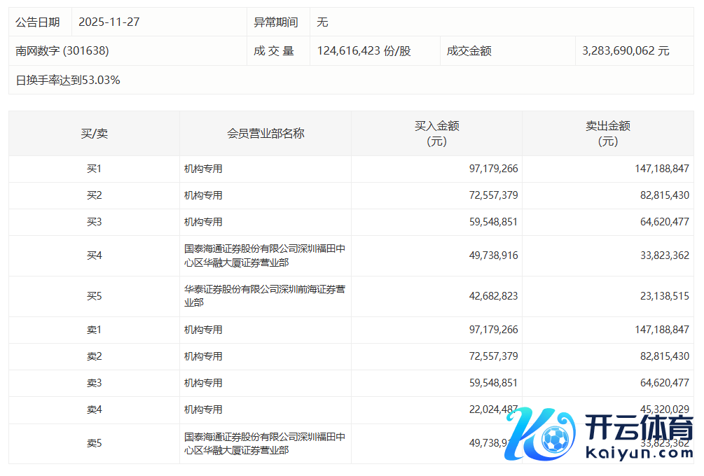 南网数字:全天换手率达53.03%,4机构总共净卖出8863.48万元南网数字:全天换手率达53.03%,4机构总共净卖出8863.48万元