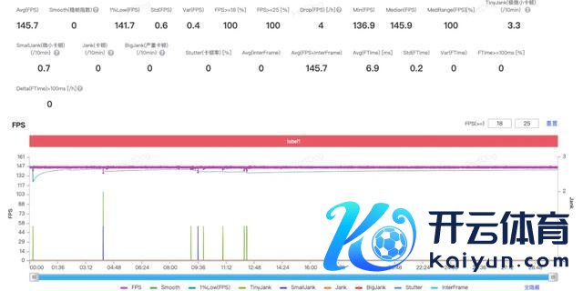 实测《王者荣耀》极致画质获得了145.7FPS的平均帧率,妥妥的满帧运行——vivo X300s的屏幕还是扶植144Hz模式,如斯一来,这款手机也成为vivo X系列首款扶植《王者荣耀》原生144 FPS+极致画质的机型。它的帧率弧线也异常镇定,1% Low帧数据达到了141.7 FPS,这个推崇可以说绝顶可以。