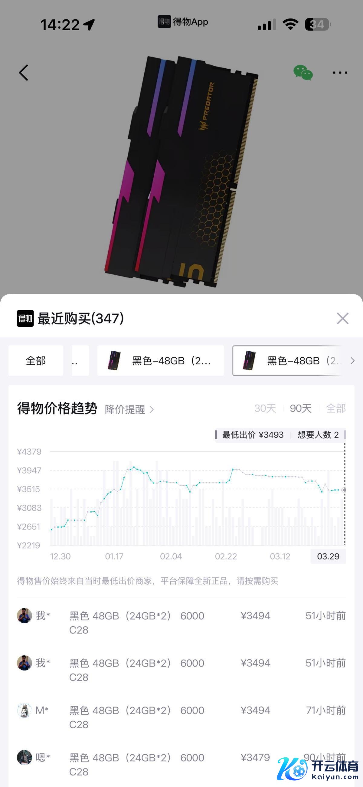 极目新闻记者 黄永进 合手续数月走高的内存价钱终于迎走动落。 自2026年3月下旬起,内存条商场价钱启动显赫下降。3月30日,“内存条价钱出现断崖式下降”联系话题登上热搜榜第二,互动量达3.8万,激发网友热议。 自3月中旬以来,国内商场的内存条价钱出现大幅下降。据潮玩平台得物APP数据领悟,2026年以来,宏碁攫取者DDR5(48GB)内存条商场成交价从峰值的4019元,降至现时的3494元,累计下降525元,跌幅约13%。 “最近半个月,内存价钱下降较多。”得物经销商暗示:“准备先出掉一部分